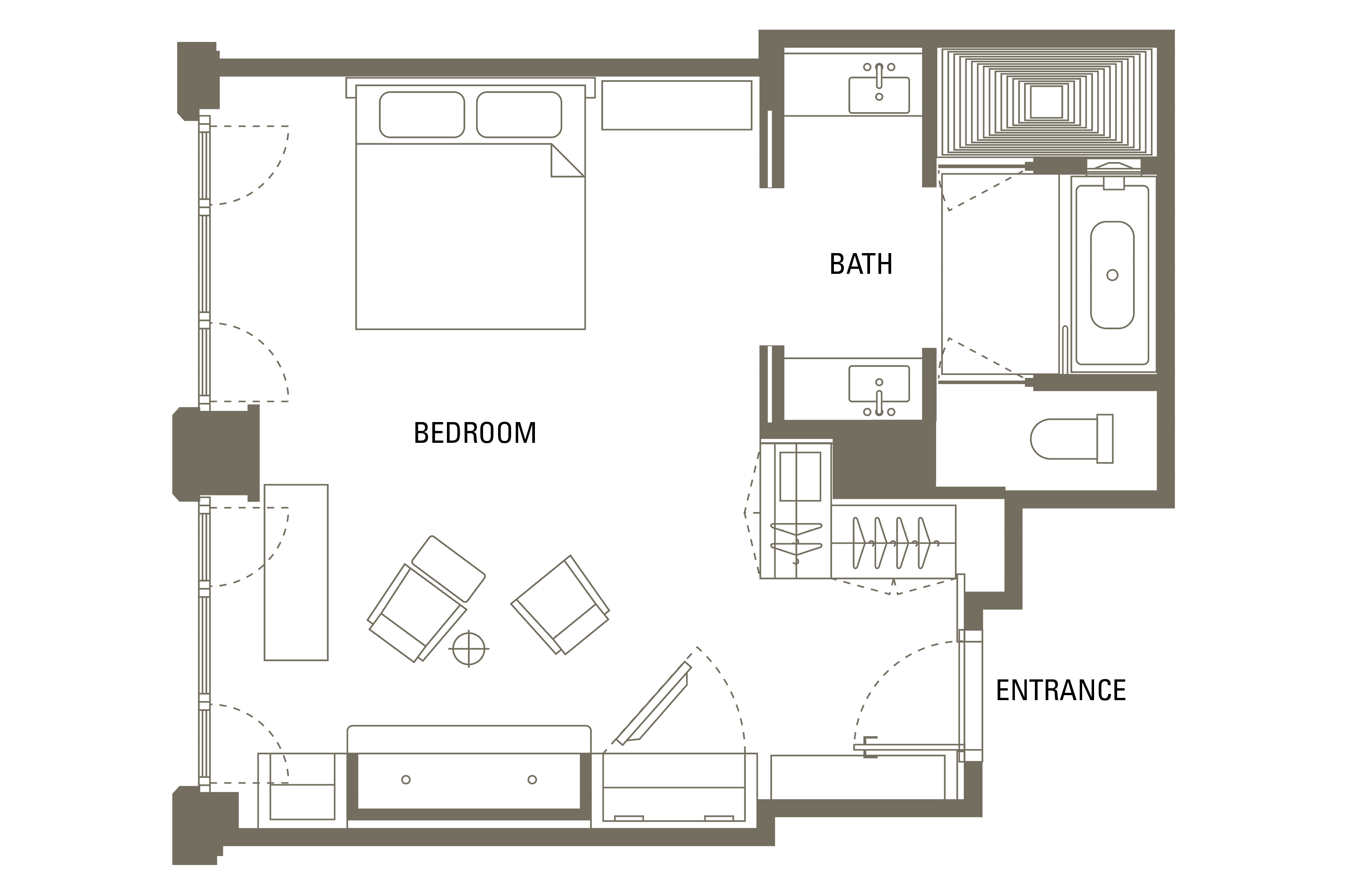 Overlooking our garden or the inner courtyard, our largest rooms offer king or twin beds and elegant sitting areas. Bathrooms have a spa-like feel with sculpted freestanding baths and walk-in showers. Some rooms have private balconies.