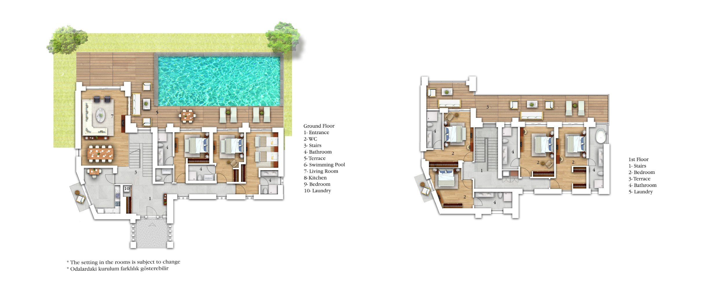This luxurious duplex villa features seven elegantly appointed bedrooms, each with its en-suite bathroom, ensuring ultimate comfort and privacy for all guests. With its own privacy and spacious outdoor area with a private pool, it's ideal for larger get togethers.
