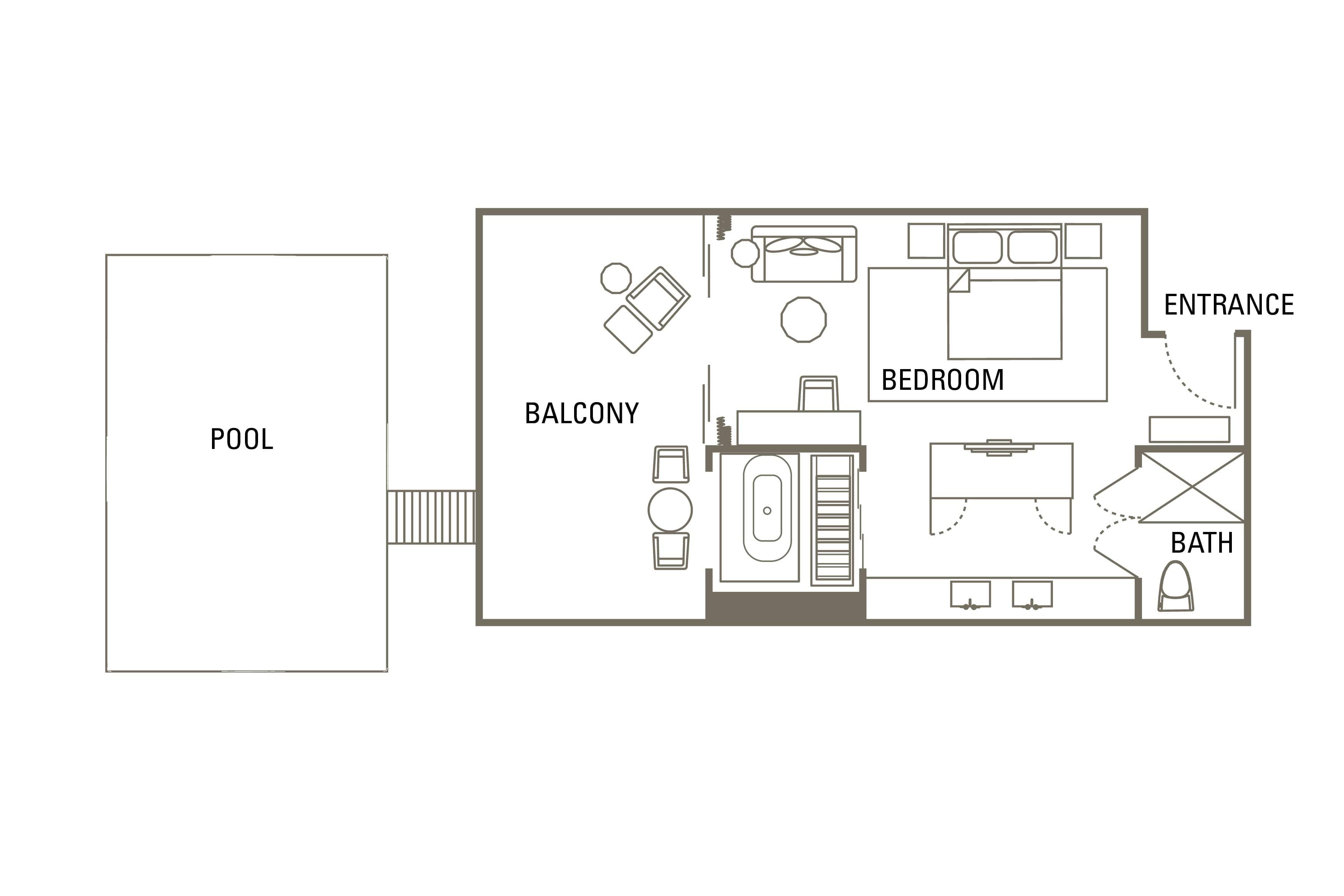 Offering direct access to an ocean view swimming pool, rooms feature floor-to-ceiling glass doors and a terrace with a daybed. Inside, lavishly appointed bathrooms feature an oversized bath and walk-in shower.