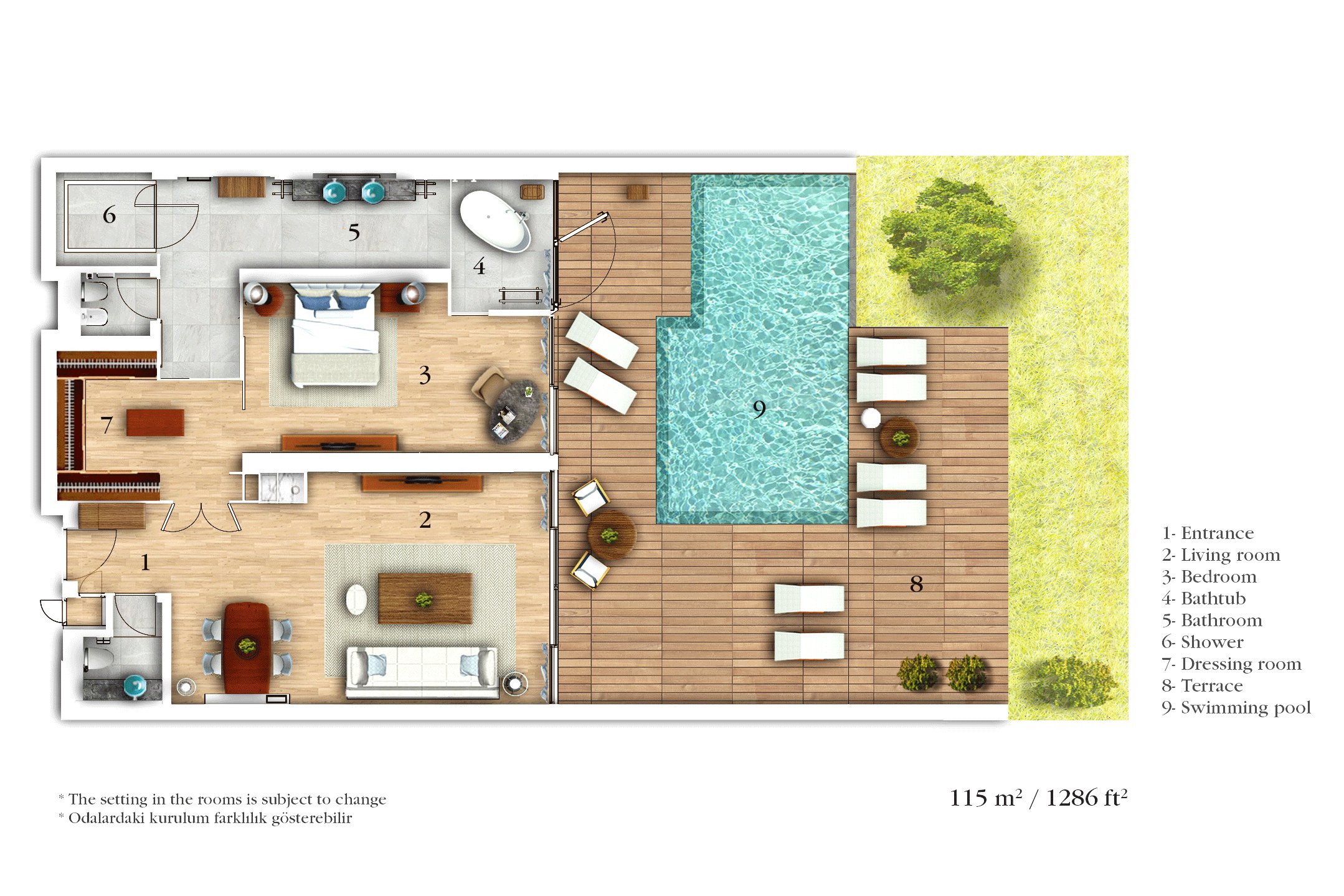Overlooking Paradise Bay, these exceptional one-bedroom suites feature a private pool on the outdoor terrace. Featuring a steam shower, oversized bathtub and twin vanity area, bathrooms are havens of calm.
