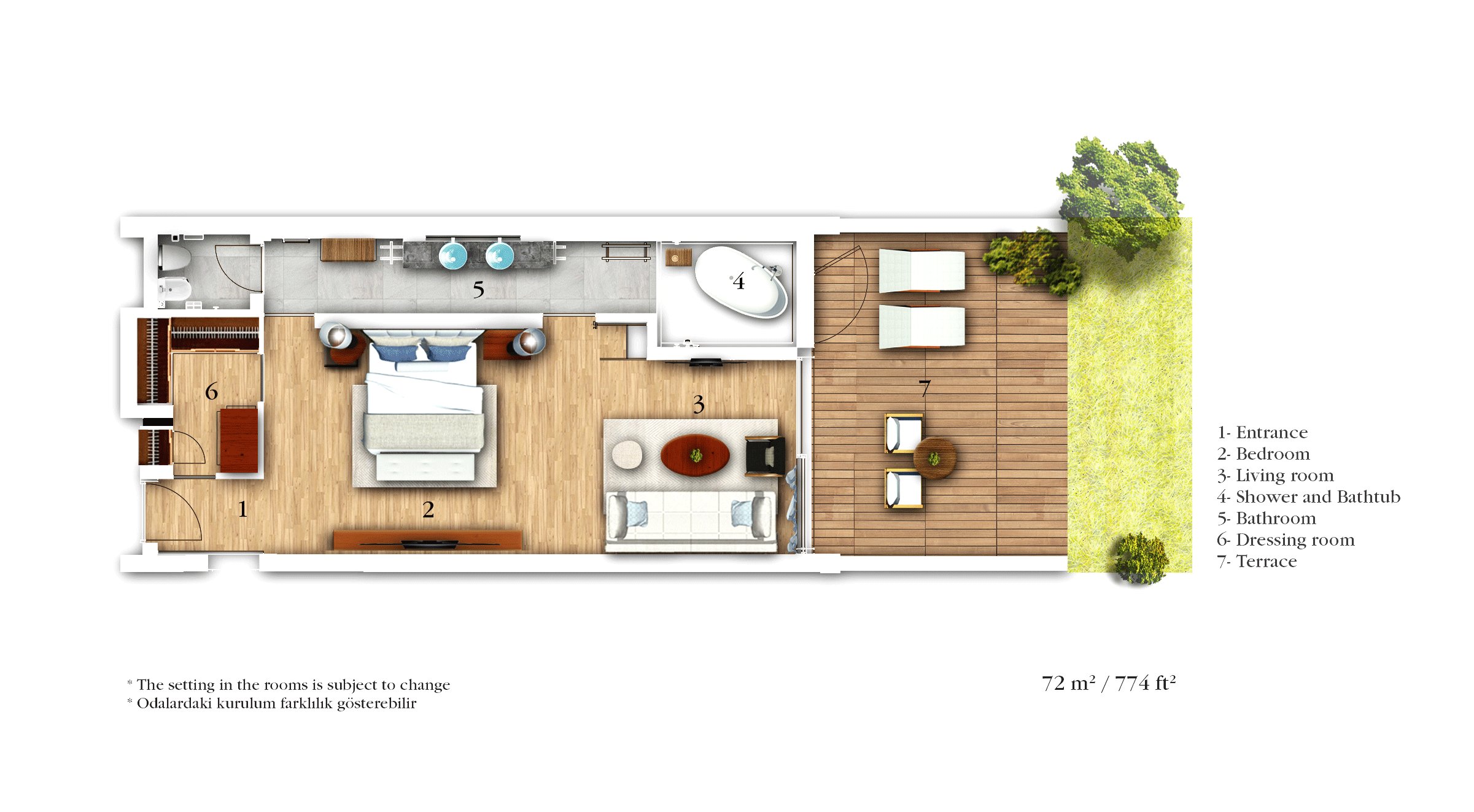 72平方米 / 755平方英尺