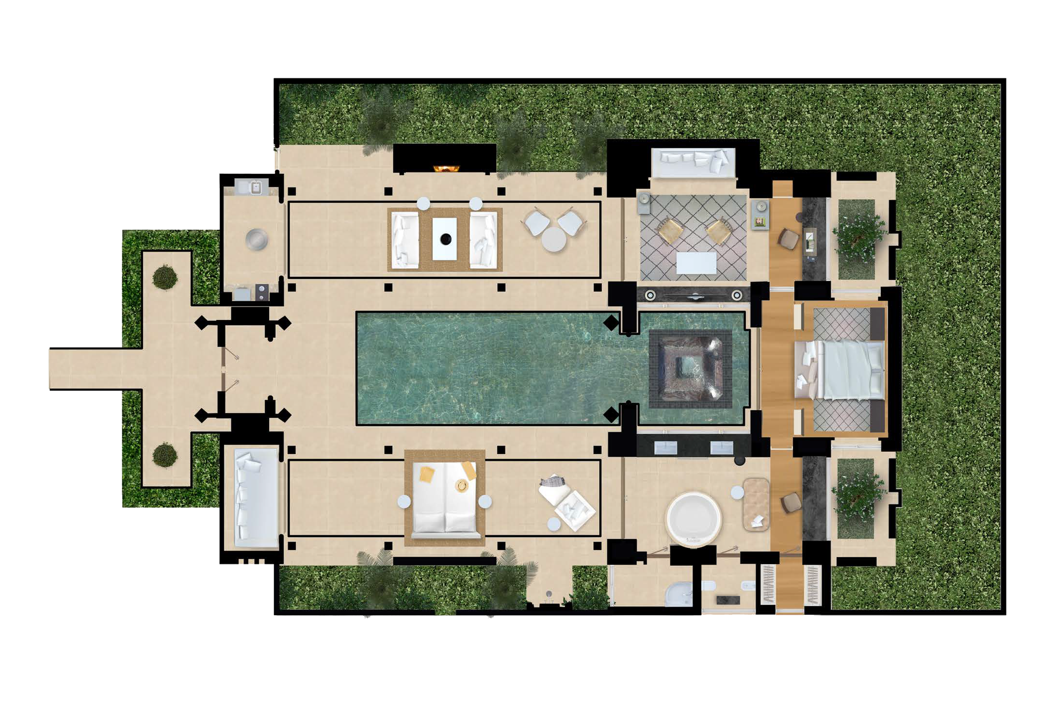 别墅采用传统的摩洛哥设计理念,典雅又不失现代,可从带有围墙、设有泳池的庭院进入。豪华主卧室内设有起居室以及配备圆形浴缸和淋浴的浴室。